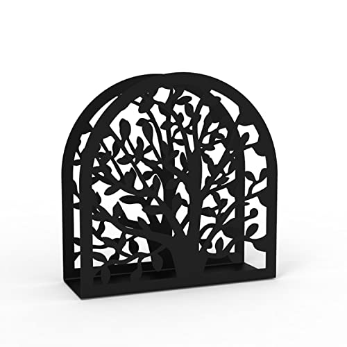 Decorelax Portatovaglioli in metallo per casa, cucina, ristorante, picnic, design albero della vita, organizer da tavolo, dispenser verticale per fazzoletti (nero)