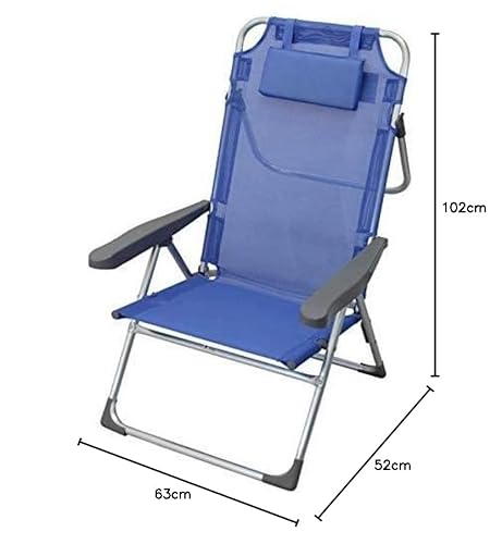 Spiaggina pieghevole con cuscino e braccioli.