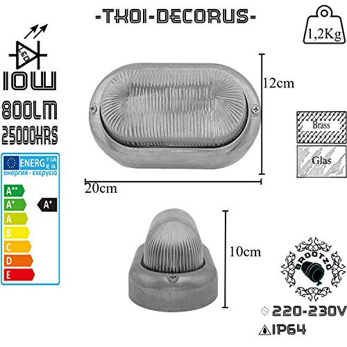 IP64, E27, max. 60 W, 20 x 12 x 10,5 cm, peso: 1,2 kg/LED 10 W, 4000 K, 800 lm.