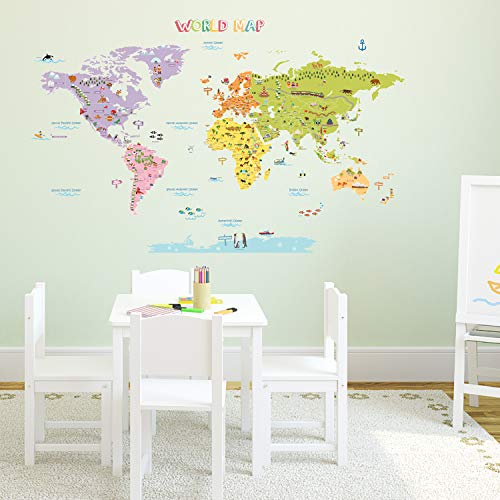 DECOWALL DAT-1306N Mappa del Mondo Colorato Peel and Stick Parete decalcomania Adesivi 128.5 x 71.5cm(Grande) (Ver. Inglese)