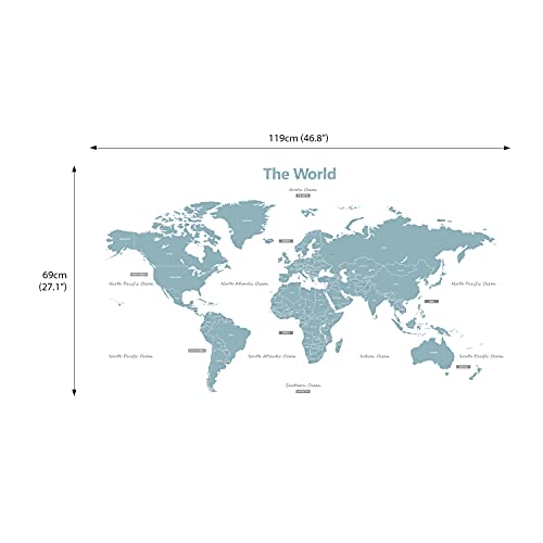 DECOWALL DL-1509B Mappa del Mondo Moderno Blu (Grande) (Ver. Inglese) Adesivi da Parete Decorazioni Stickers Murali Soggiorno Asilo Nido Camera Letto per Bambini decalcomanie