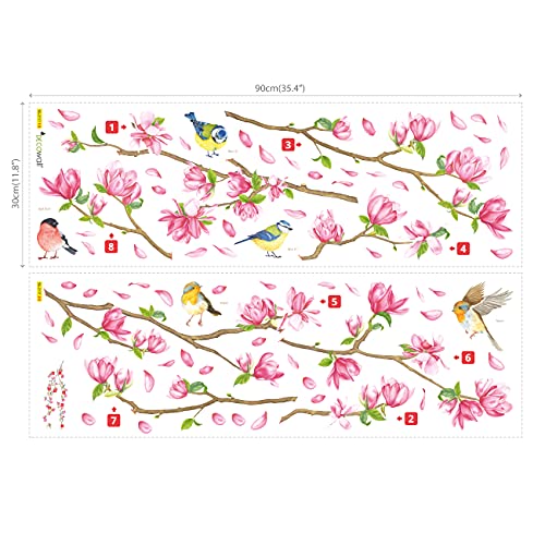 DECOWALL SG-2117 Ciliegio Uccelli Albero Adesivi da Parete ramo di magnolia rosa Murali Decorazione per Camera Letto Soggiorno Bambini Murale DIY