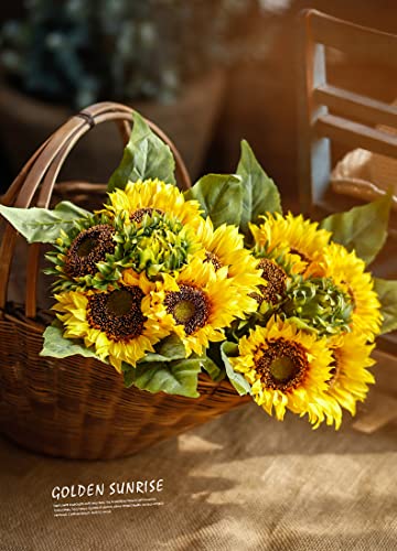 Decorazione perfetta: sembrano perfetti sia che li rilasci dal fascio e li usi come girasoli a stelo singolo per riempire i tuoi vasi o come bouquet da sposa da sposa. Molteplici capolini hanno reso questo bouquet più squisito. I girasoli simboleggiano l'amore silenzioso, l'ammirazione e la lealtà, perfetti per composizioni floreali fai da te, bouquet da sposa, centrotavola da tavola, boutonnieres, ecc. o scene di decorazione: fidanzamento, cerimonia nuziale, festa, ufficio, hotel, ristorante e molto altro ancora.