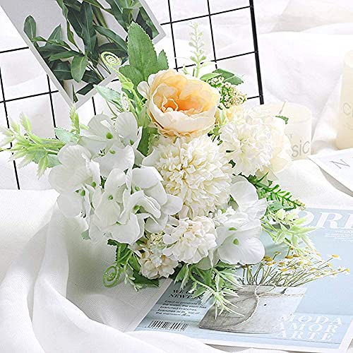 Decpro 2 Pezzi Peonia Artificiale Seta Ortensie Crisantemo Garofani Tutti Mazzi di Fiori per Matrimonio, Home Office Decorazione del Giardino, Centrotavola, Composizioni Floreali, bianco