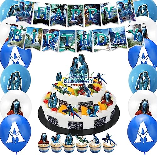 DecPtyTa Stoviglie Avatar per Feste,Decorazioni Compleanno Avatar Piatti Tovaglioli Palloncino Tovaglia Banner e Cake Top,Adatto per 10 Persone (D)
