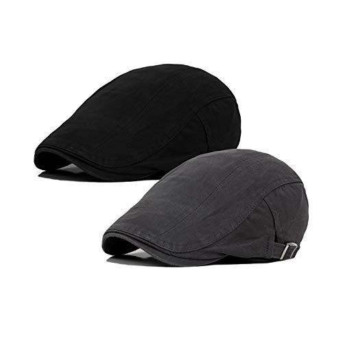 DecStore Pacco di 2 Uomo Cotone Cappuccio Berretti Edera Cappelli Guida Cappelli Invernale Vintage Beret Hat(Gray+Black)