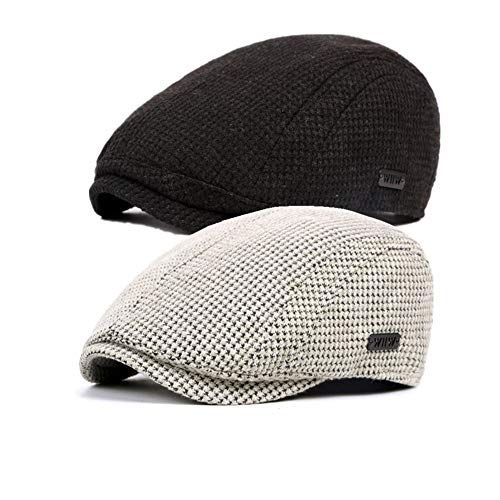 DecStore Pacco di 2 Uomo Cotone Cappuccio Berretti Edera Cappelli Guida Cappelli Invernale Vintage Beret Hat(Khaki+Navy)