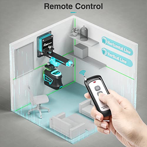 【Laser 3 x 360°】 con il telecomando, i tasti H e V possono essere controllati individualmente per selezionare un raggio laser orizzontale a 360° e due verticali a 360°. lo strumento laser si livellerà automaticamente e indicherà il fuori livello con l'aiuto di un pendolo intelligente. Il raggio laser lampeggerà velocemente e lo strumento emetterà un segnale acustico di avvertimento quando è oltre l'auto-livellamento gamma ±3°.