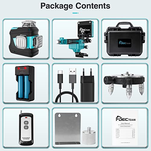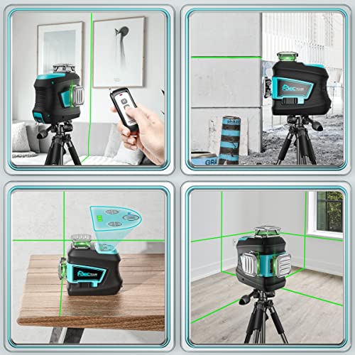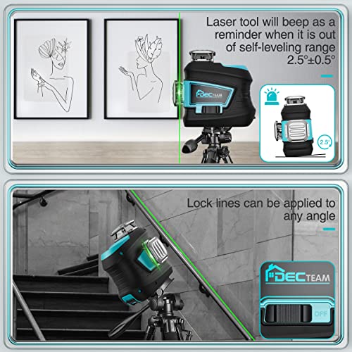 DECTEAM 3 x 360 Linea Laser Croce, Verde Autolivellante Orizzontale e Verticale Tre Linee Laser a 360° con Telecomando, IP54, Batteria agli Ioni di Litio e Base Girevole Regolabile Inclusa - DJ03CG