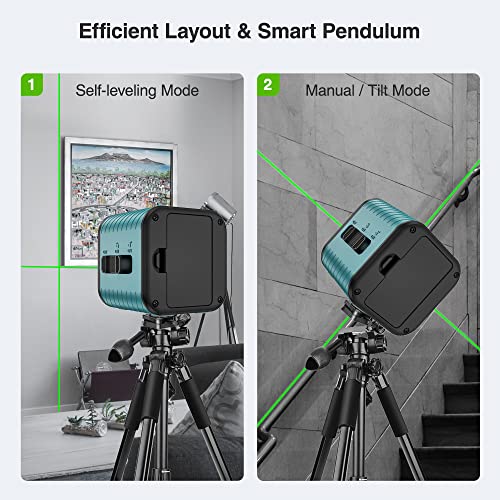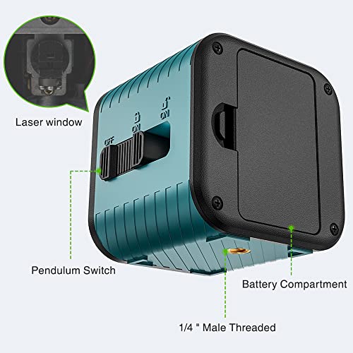 DECTEAM Livella laser autolivellante con raggio verde, laser a linee incrociate linea orizzontale/verticale fai-da-te, misurazione accurata 100 piedi (30 m), IP54, 2 batterie AA incluse C011G