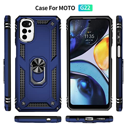 DEDUX Cover Custodia Compatibile con Motorola Moto G22 [Tough Armor Series] Robusto Pannello Posteriore PC AntiGraffio + Paraurti Antiurto TPU + Pratico cavalletto. Blu Navy