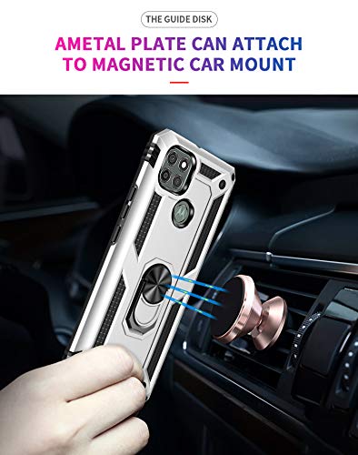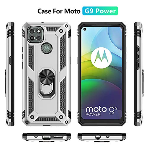 Dedux Cover Motorola Moto G9 Power [Tough Armor Series] Robusto Pannello Posteriore PC AntiGraffio + Paraurti Antiurto TPU + Pratico cavalletto. Argento