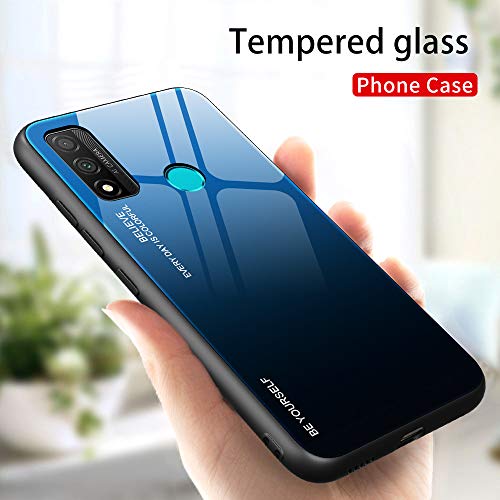 Dedux Custodia Cover per Huawei P Smart 2020, Custodia in Vetro Temperato a Colori Sfumati + Protettivo TPU Case Cover (Blu/Nero)