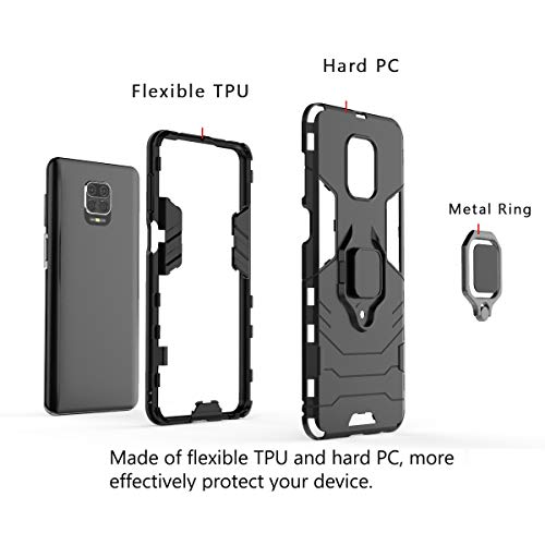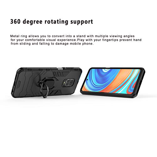Dedux Custodia per Xiaomi Redmi Note 9S/9 PRO/9 PRO Max, Supporto per Anello in Metallo [Supporto Magnetico per Auto] con Supporto ad Anello Custodia Cover. Nero