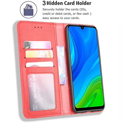 Dedux Portafoglio Custodia Cover Compatibile con Huawei P Smart 2020, Cover per Biglietti da Visita in Pelle Retro con Chiusura Magnetica Premium Pu Flip, Rosso