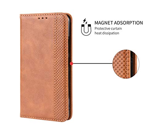 Dedux Portafoglio Custodia Cover Compatibile con Oukitel C19, Cover per Biglietti da Visita in Pelle Retro con Chiusura Magnetica Premium Pu Flip, Marrone
