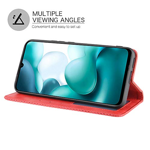 Dedux Portafoglio Custodia Cover Compatibile con Xiaomi Mi 10 Lite 5G, Cover per Biglietti da Visita in Pelle Retro con Chiusura Magnetica Premium Pu Flip, Rosso