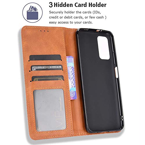 Dedux Portafoglio Custodia Cover Compatibile con Xiaomi Redmi 9T, Cover per Biglietti da Visita in Pelle Retro con Chiusura Magnetica Premium Pu Flip, Marrone