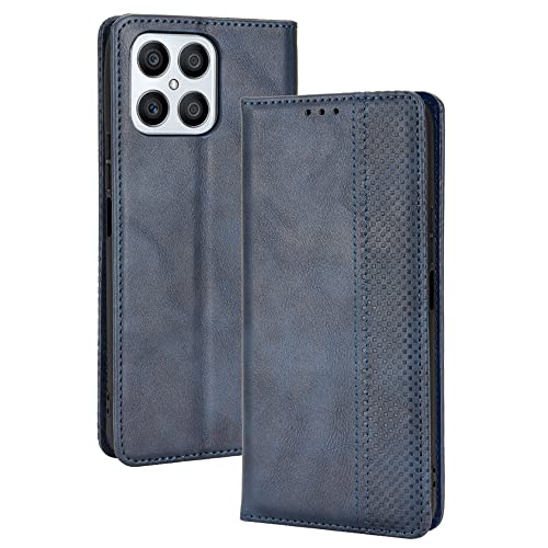 DEDUX Portafoglio Custodia Cover per Honor X8, Cover Biglietti Visita Pelle Retro con Chiusura Magnetica Premium Pu Flip. Blu