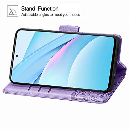 Dedux Portafoglio Custodia per Xiaomi Mi 10T Lite 5G, Cover per Custodia a Farfalla con Fiore di Rosa in Rilievo [Funzione Stand] [Slot Cart] [Chiusura Magnetica], Dotata di Cordino. Viola