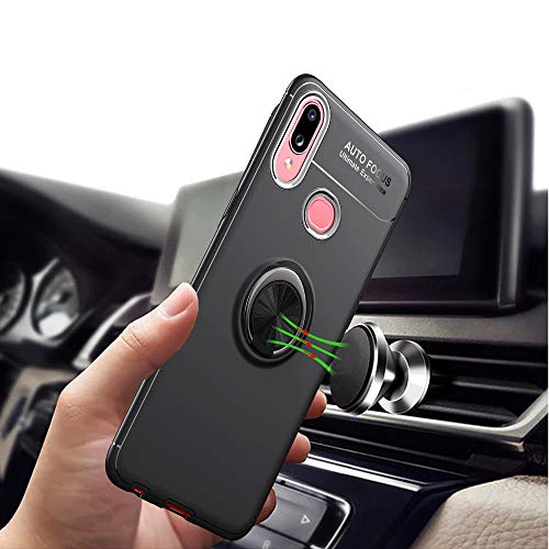 Dedux Silicone Morbido Cover per Huawei Y6s, Ultra Sottile Custodia Magnetica per Auto con 360 Rotante Supporto per Anello. Nero + Nero