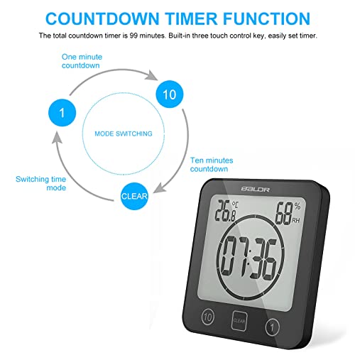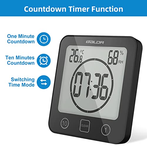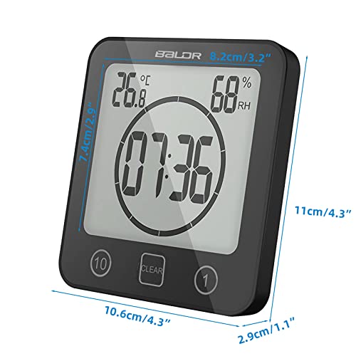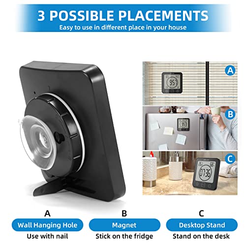 DEECOZY Tendlife - Orologio termoigrometro, orologio da bagno, sveglia digitale LCD, timer per doccia, orologio da bagno portatile con controllo tattile per cucina e bagno