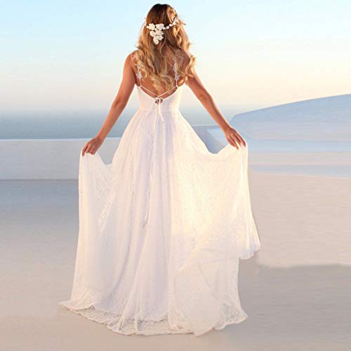 DEELIN Moda Tendenza Nobile Donne Pizzo Solido Manica Indietro Hollow V-Collo Lunga Festa Vestito Elegante (E-Bianco, lagre)