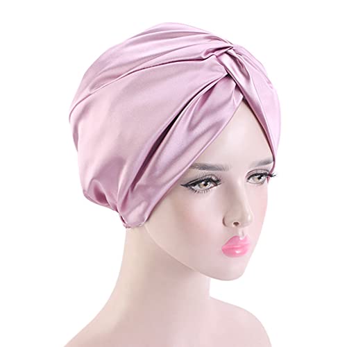 Deendeng Cuffia per il sonno - Tinta unita Seta Notte Sonno Cap Capelli Cappello Chemioterapia Cappello Avvolgere Nastro Elastico Haircare Turbante Cross-twisted Cappello