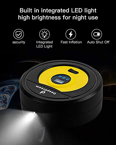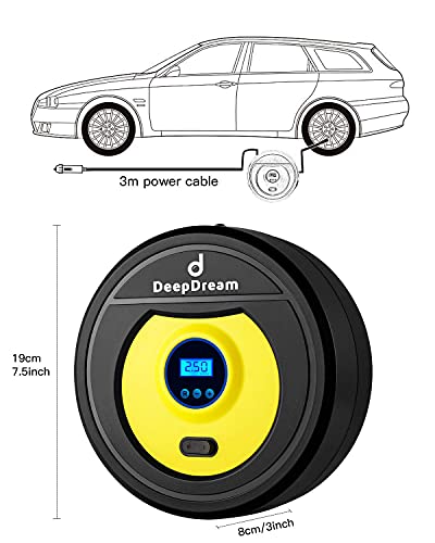 DeepDream - Gonfiatore digitale per pneumatici, 12 V, 150 psi, pompa per pneumatici, portatile, con flusso d'aria da 35 l/min e luce LED LCD per auto, palline, giocattoli, letti gonfiabili