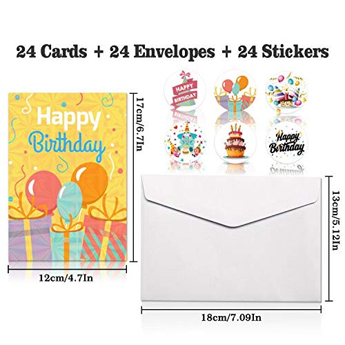 Deeplay 24 Birthday Cards Assortment, Elegant Bulk Notes Embossed with Gold Foil Letters, with Envelopes and Stickers (Large Size 4.7 * 6.7inch)