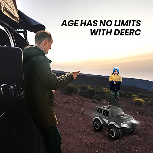 DEERC Auto RC con Ruota di Scorta, Veicolo SUV da 160 Minuti con Faro e Fanale Posteriore a LED, Auto Telecomandata da 2.4 Ghz 1:18, Monster Truck Fuoristrada, macchinina telecomandata per bambini