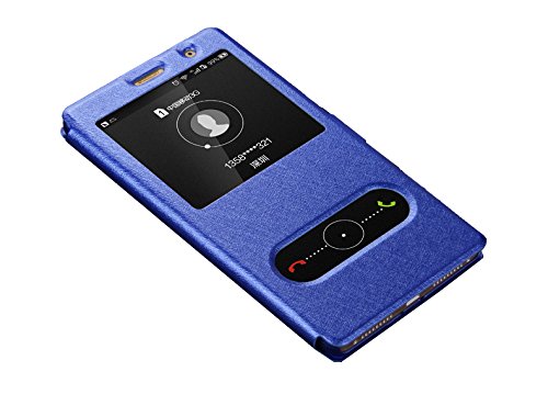 Deesos Huawei Mate 8 Cover Flip Sottile Custodia Cover Doppio Window View Stand Funzione Chiusura Magnetica Premio PU Cuoio Custodia per Huawei Mate 8 Blu
