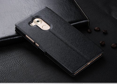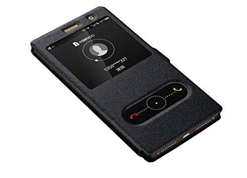 Deesos Huawei Mate 8 Cover Flip Sottile Custodia Cover Doppio Window View Stand Funzione Chiusura Magnetica Premio PU Cuoio Custodia per Huawei Mate 8 Nero