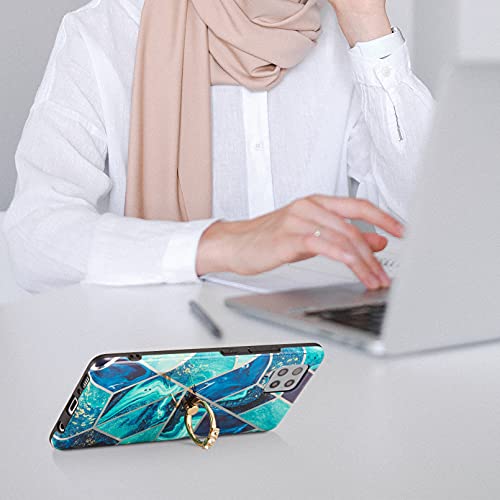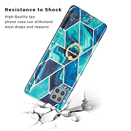 DEFBSC - Custodia in marmo per Samsung Galaxy A12 5G, custodia in marmo colorato con anello a 360°, ultra sottile e morbido in TPU, antiurto, per Samsung Galaxy A12 5G, colore: Blu