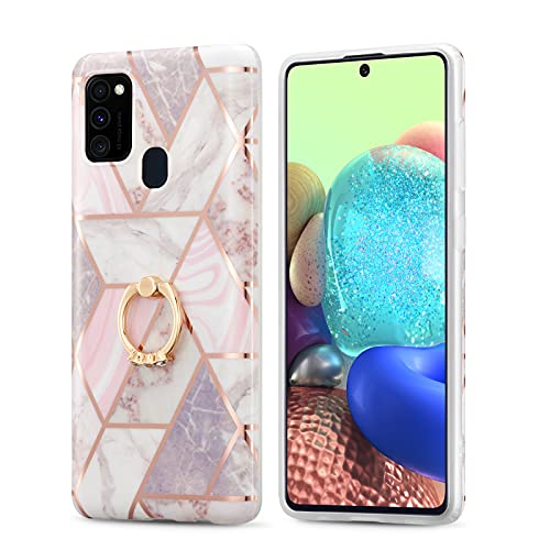 DEFBSC - Custodia in marmo per Samsung Galaxy A21S con supporto ad anello, design marmorizzato a 360°, con impugnatura ad anello, in morbido TPU antiurto per Samsung Galaxy A21S