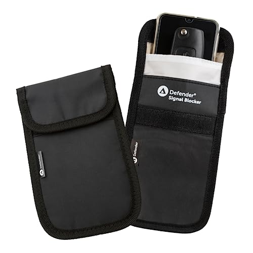 Defender, custodia con blocco del segnale per telefono: custodia per bloccare il segnale del telefono cellulare con RPF per la sicurezza stradale e RFID per proteggere la chiave magnetica dell'auto, Nero, 2 x Pack