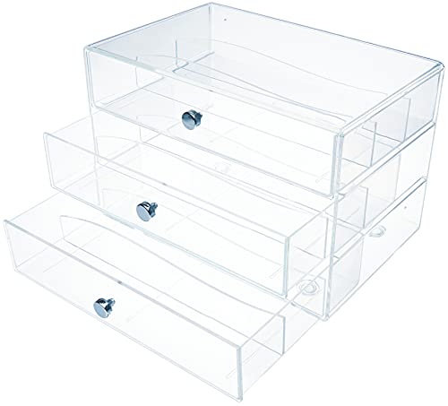 Deflect-o Scatola portaoggetti in plastica, con 3 cassetti, per nastro Washi, ideale per riporre oggetti, trasparente, per cancelleria, trucco o forniture per artigianato