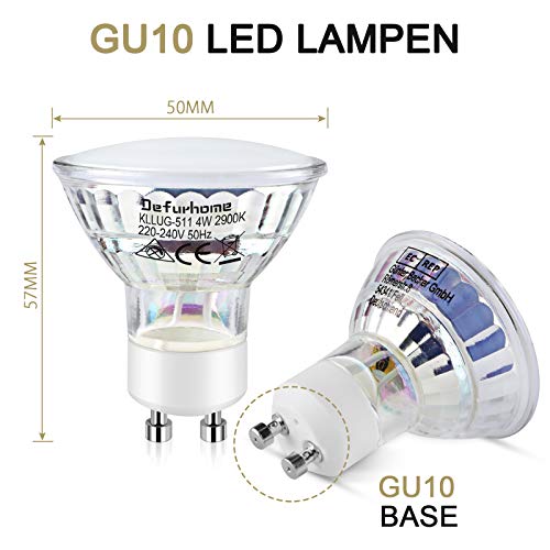 Defurhome Lampadina a LED GU10, 4 W, sostituisce una lampadina alogena da 50 W, 450 lm, luce bianca calda 2900 K, angolo di diffusione di 120°, confezione da 10