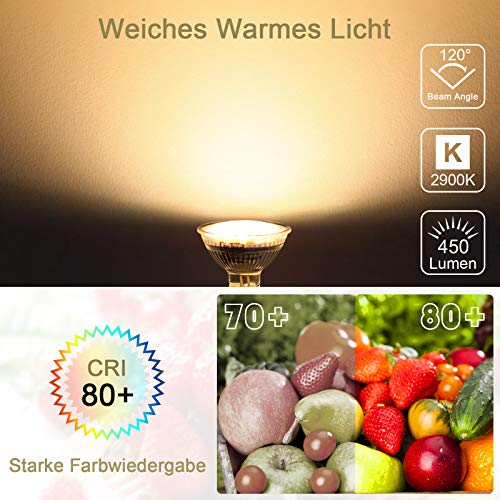 ★ Facile da montare: 2900 K, luce bianca calda, 450 lumen, lampadina GU10, ricambio perfetto per lampadine alogene da 50 W. Questa lampadina piccola e compatta si adatta a attacchi GU10, facile da installare, non dimmerabile.