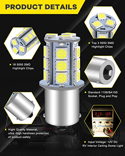 DEFVNSY (Confezione da 10) - 6000K Bianco 1156 1003 BA15S 1141 7506 5050 18-SMD Lampadine di ricambio LED per 12V Auto Camper Rimorchio Barca Luci Interne