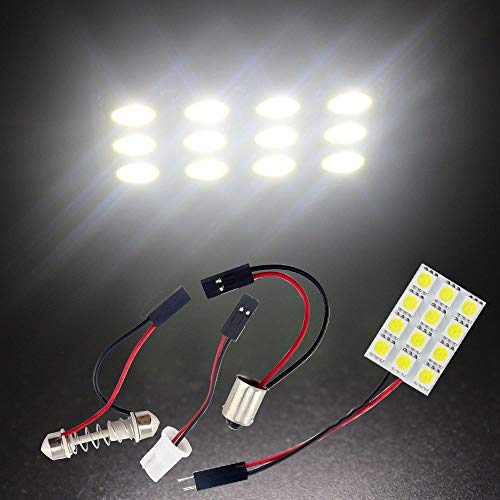 Defvnsy Luce interna per autoveicoli, luce a pannello LED, 5050 12SMD, luce a pannello per lettura, luce a soffitto con 3 adattatori (T10 / BA9S / Festone ), 12V bianco 6000k (confezione da 6)