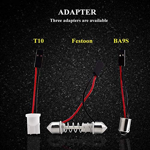 Confezione: 6pcs 5050 12-SMD lampadine a LED, 6pcs T10 adattatori luce, 6pcs Festoon adattatori Dome Light, 6pcs BA9S adattatori, adattatori diversi possono essere collegati a diversi modelli, è possibile installare in qualsiasi parte del vostro veicolo fino a quando c'è abbastanza spazio.