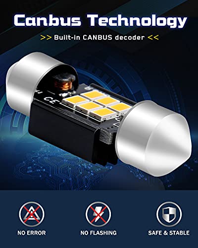IN EVIDENZA: 3020 6-SMD Luci della mappa della cupola interna della lampadina a festone LED senza polarità e di alta qualità senza polarità, ciascuna lampadina è molto più luminosa delle lampade tradizionali giallastre OEM di serie, basso consumo energetico, prestazioni stabili, alta luminosità. ☞ (Ottimo per luci paesaggistiche a bassa tensione e un bel bianco caldo morbido per le zone notte) ☜.