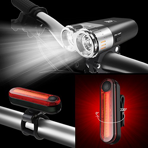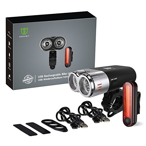 Degbit Luci per Bicicletta, Set Luce Bici LED Light Set, Luce Bici LED, USB Ricaricabile Luce della Bicicletta Set, Sicurezza della Bici del LED Luce per Esterna, Bright Faro e Red fanali Posteriori