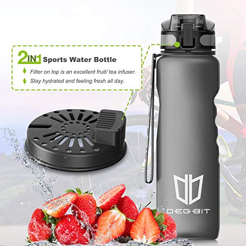 PROTEZIONE DUST & LEAK: Degbit Gym Water Bottle con tappo di sicurezza è protetto da sporco e polvere. Il suo design ergonomico presenta un sistema di rilascio e blocco dei pulsanti. Protezione duratura con cuscinetto in silicone alimentare e anello nel cappuccio per fornire una buona tenuta per la bottiglia d'acqua da 1L. Il fermo del gancio di bloccaggio preciso blocca il coperchio saldamente, fornendo una bottiglia sicura e pratica.