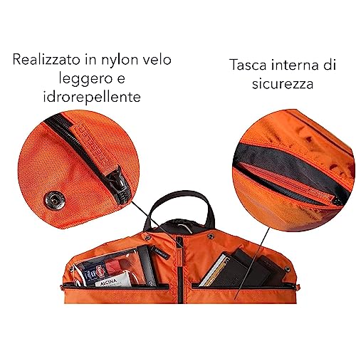 DEGELER SkyHanger - borsa porta abiti con appendino unico in titanio per uomo e donna - sofisticata borsa porta abiti per viaggiare senza pieghe - nylon leggero e idrorepellente - arancione