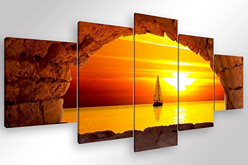 Degona Quadro Moderno Tramonto sul Mare - 5 pz. cm 200x90 Stampa su Tela Canvas Arredamento Arte XXL Arredo per Soggiorno Salotto Camera da Letto Cucina Ufficio Bar Ristorante. Effetto Dipinto