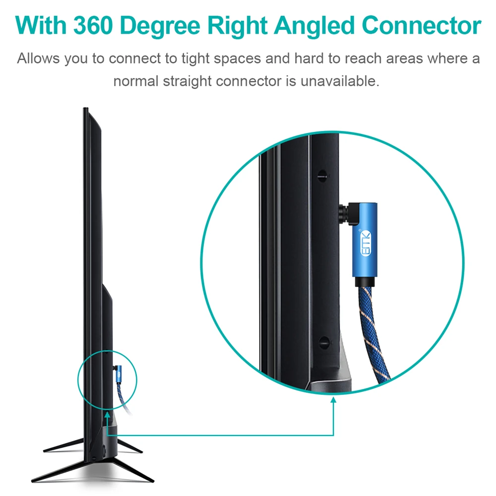 EMK 90 Degree Optical Cable Right Angle Digital Sound SPDIF Fiber Optical Audio Toslink Cable short with braided jacket
