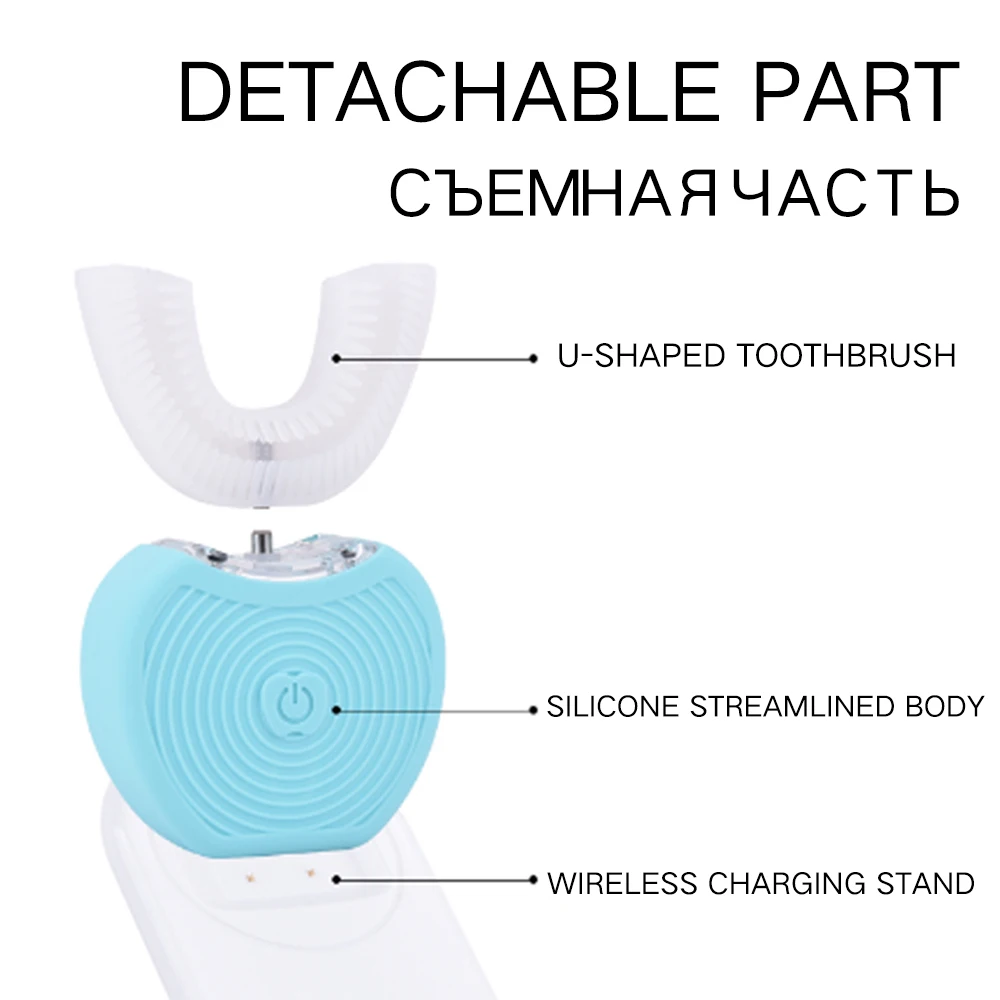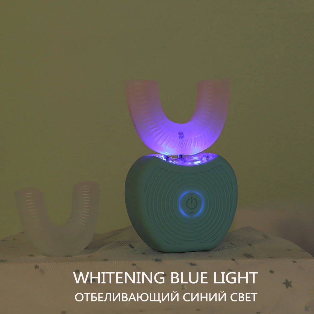 360 Degrees Intelligent Automatic Sonic Electric Toothbrush U Type 3 Modes ToothBrush USB Charge Toothbrush Whitening Blue Light