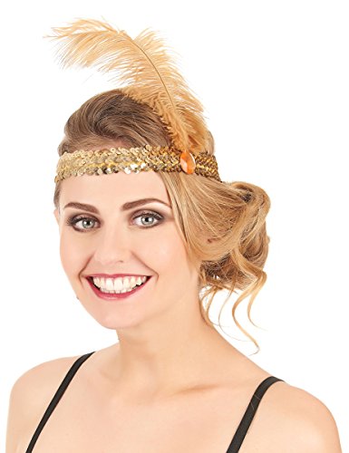 DEGUISE TOI Fascia Charleston Dorata con Piuma - Oro - Taglia Unica